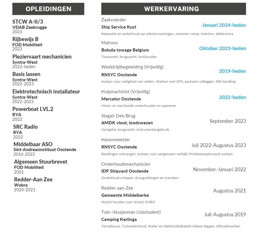 Ship Service Kust wordt gerund door Tillo Van Brabant. Sinds 2020 heeft hij van boten zijn grootste bezigheid gemaakt door zich in te zetten voor de begeleiding van zeilwedstrijden. Na zijn middelbare studies besloot hij zich te richten op een nautische carriere. Na enkele maanden op scheepswerf IDP te werken aan professionele schepen begon hij aan een opleiding bij VDAB Zeebrugge. Hier behaalde hij het A-II/3 certificaat. Ondertussen schoolt hij zich bij aan Syntra-West. Op dit moment werkt hij als matroos bij een havensleepbedrijf en werkt hij aan het groeien van Ship Service Kust.